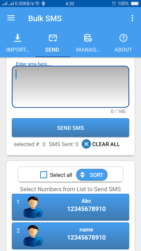 This app build for send SMS to a list of friends or clients contact list that is