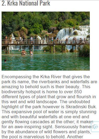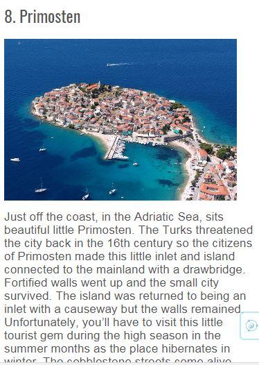 Points of interest: Plitvice Lakes National Park, Hvar, Korčula, Brač, MORE