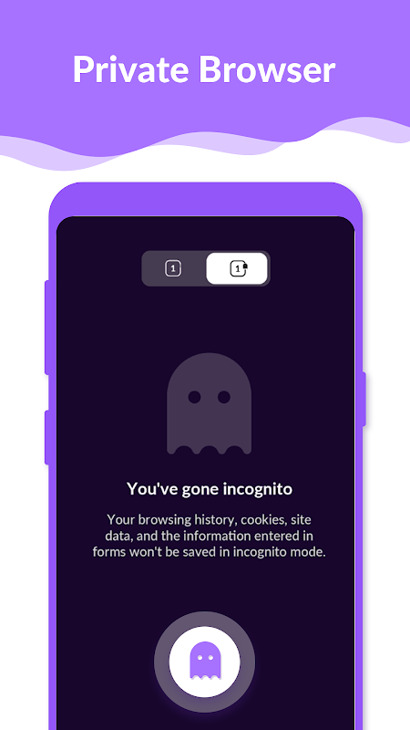 The private browser has Incognito mode that allows you to browse and search the web pages privacy and incognito without leaving any search or browsing history.