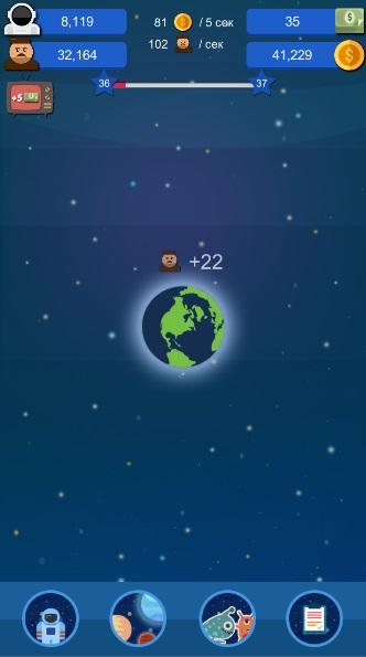 Exploring Space Idle - игра, в которой Вашей первостепенной задачей будет исследовать космос и инопланетных существ. Вам необходимо кликать по планете "Земля", благодаря чему будет появляться человечество. Далее их необходимо тренировать в отдел космонавтов, которые будут выдавать Вам прибыль и без которых, разумеется, не получится исследование. Исследуйте космос, находите новые виды инопланетных существ, улучшайте свои навыки и откройте всю вселенную!