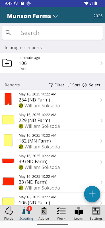 खेतों की तलाश करें और फसल की प्रगति पर नज़र रखें