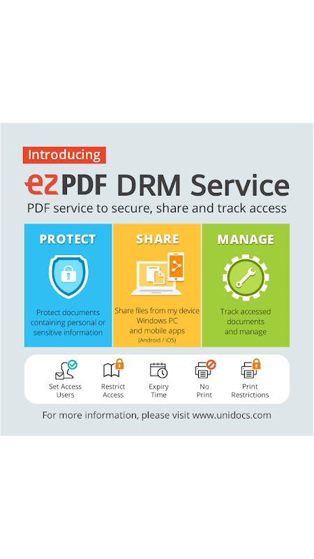 EzPDF DRM सेवा पर आधारित सुरक्षा सेटिंग्स के साथ एक समर्पित पीडीएफ दर्शक।