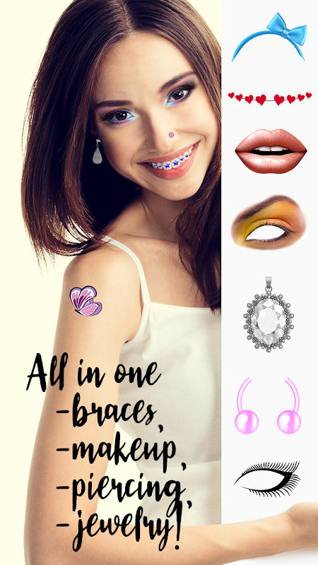 अपनी तस्वीरों में एक उत्कृष्ट देखो बनाएँ और शब्दों के बजाय अपनी मुस्कान बोलने दें! दंत चिकित्सक के पास जाने के बिना अपना खुद का braces बनाएं और अपने फैशनेबल गहने rhinestones, भेदी और अन्य चेहरे की सजावट के साथ ध्यान आकर्षित करें।
