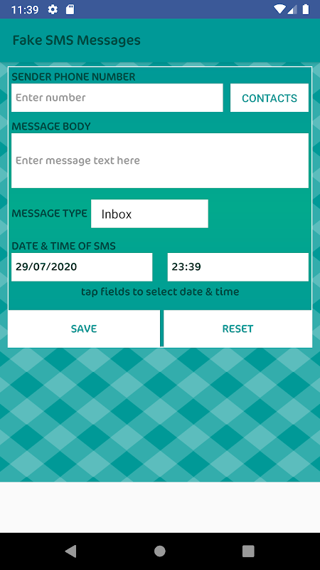 Fake SMS messages application is a useful tool for sending a Fake SMS, Receiving a Fake SMS, Outbox a Fake SMS, and add a Fake SMS in Sent items from anyone you want in Inbox, OutBox Sent Items and Drafts! Fool your friends and let them believe that you have created SMS for them in Past Time.