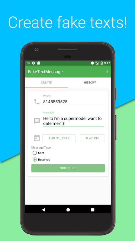 Fake Text Message is an application that helps you create fake texts to prank your friends! Fake Text Message lets you create & save fake sms messages to your phone.