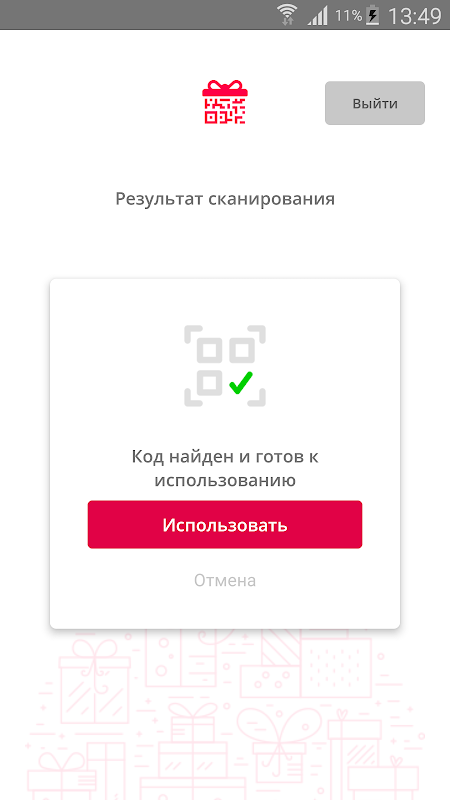2) информация о статусе кода: действителен, использован, готов к использованию;