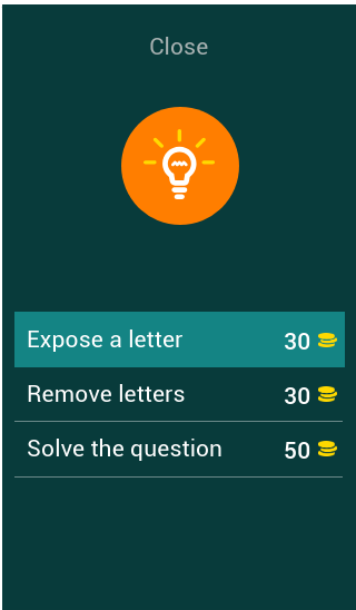 प्रत्येक सही उत्तर ने आपको उस सिक्के से पुरस्कृत किया, जिसका आप आवश्यकता पड़ने पर संकेत के रूप में उपयोग कर सकते हैं।
