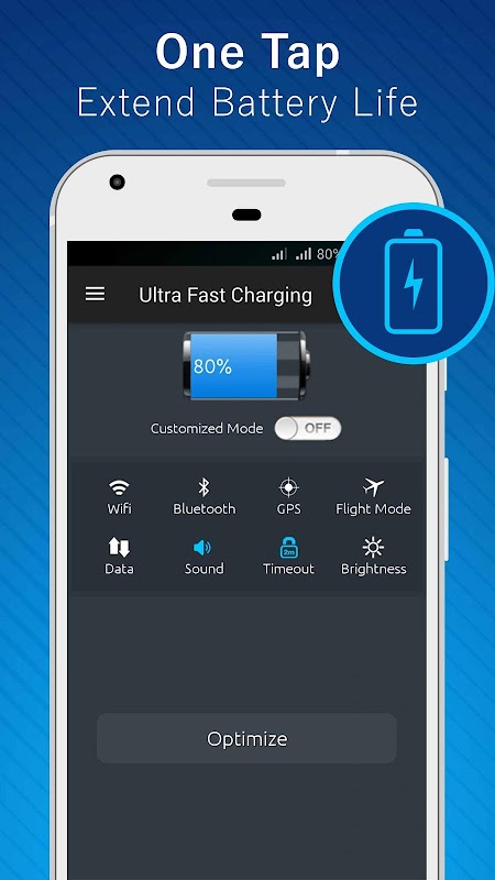 Find out what’s draining your phone power. Adjust power-consumption settings (e.g. brightness) and disable unnecessary apps that run down phone battery. Fast battery charger app helps you scan all services that are consuming phone battery including Bluetooth, GPS, Wi-Fi, Mobile data, High screen brightness, Screen timeout, NFC, Auto Sync etc.