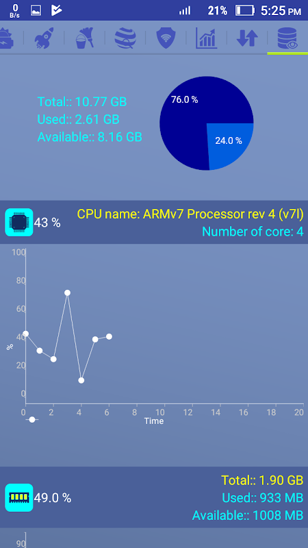 ►Speed charging up to 140% The app analyzes consumption of battery to recommend charging mode suitable for your android devices. Thanks to that, charging speed is boosted to approximately 140%
