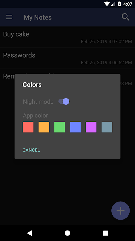 * सुंदर रंग विषयों और रात मोड