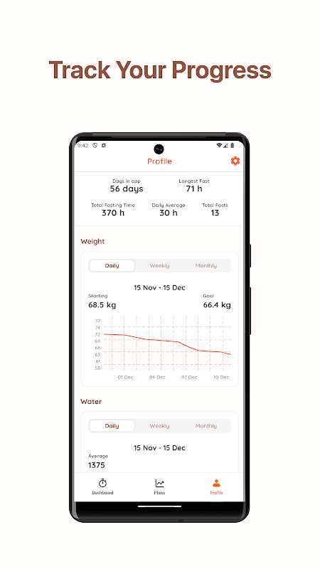 ✓ अंतर्दृष्टि और विश्लेषण: अपनी उपवास यात्रा को बेहतर ढंग से समझने के लिए विस्तृत आंकड़ों और रुझानों तक पहुंचें। अधिकतम परिणामों के लिए अपनी उपवास दिनचर्या को समायोजित और बेहतर बनाने के लिए इन जानकारियों का उपयोग करें।