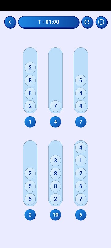 कंटेनर सॉर्ट में आपका स्वागत है! इस मजेदार पहेली खेल के साथ अपने छँटाई और रणनीति कौशल का परीक्षण करें. कंटेनरों को खाली करने के लिए उन्हें बढ़ते या घटते क्रम में संख्याओं से भरें. Container Sort के साथ सहज ज्ञान युक्त गेमप्ले और अंतहीन मस्तिष्क-टीजिंग मज़ा का आनंद लें!