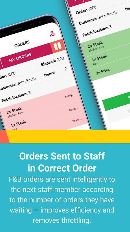 FETCH PRO is the staff app from FETCH, enabling the serving team at the food & drink venue to be truly mobile and efficient. FETCH PRO allows our order system to send orders to staff intelligently, so that staff receive orders on their smartphone according to who has the fewest orders waiting. This reduces waiting time, removes queues at the bar or collection point, and allows staff to always be on the move without ever missing an order. No need to keep going to tables with pen and paper to take orders, they all come straight through to you directly from the customer. You simply deliver the order or send the message that it is ready for pick-up.