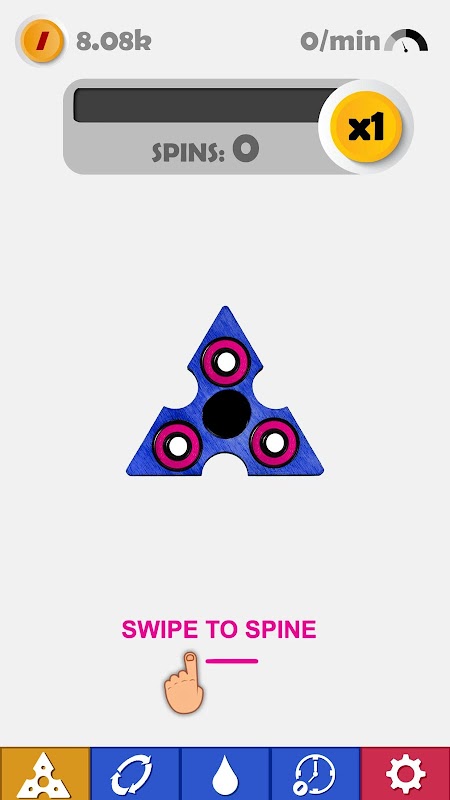 आपके पास सर्वश्रेष्ठ स्पिन रिकॉर्ड सेट करने के लिए कुल 5 स्वाइप हैं रुको और मीठी बोनस को छूने के लिए रुको! स्पिनर को अपग्रेड करें, अपने दोस्तों के साथ प्रतिस्पर्धा करें और रिकॉर्ड को हरा दें!