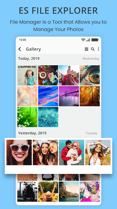 The best ES file manager, super file manager, File Commander for your Android phones or tablet. ES File Explorer allows you to browse your SD card, create directories, rename, copy, move, and delete files. ES File Explorer is a tool that lets you manage the content on your SD card more easily from your Android terminal.