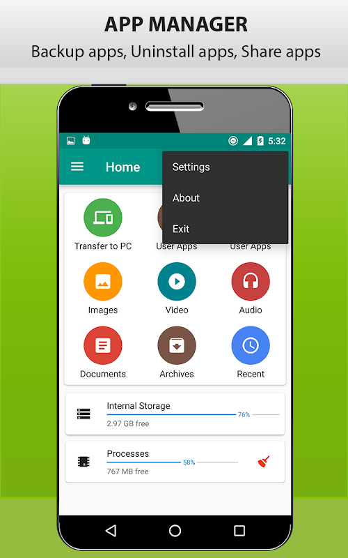 फ़ाइल प्रबंधक और एक्सप्लोर करें आपकी फ़ाइलों की श्रेणी, पुनर्प्राप्ति, फ़ाइल कंप्रेसर, फ़ाइल डाउनलोडर और ब्राउज़िंग के लिए बहुत कुछ देखने के लिए प्रदान करता है, और आप अपनी छवियों, फोटो, फाइलें, दस्तावेज़ आदि भी ब्राउज़ कर सकते हैं। स्थापित 3 पार्टी अनुप्रयोगों की एक सूची के साथ-साथ सिस्टम एप्लिकेशन या Google एप्लीकेशन, जो फ़ाइल प्रबंधक और एक्सप्लोर करें एप्लिकेशन से सीधे बैकअप, खोला या अनइंस्टॉल किया जा सकता है