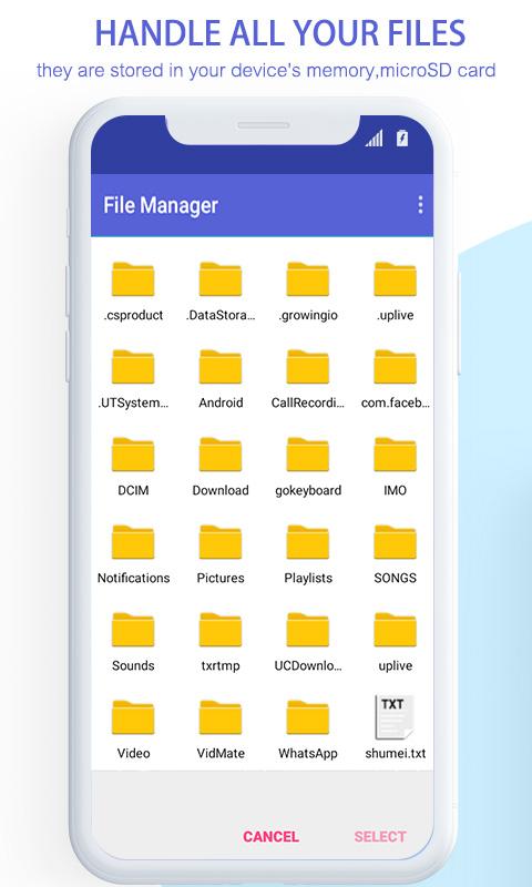कुशलतापूर्वक और आसानी से अपनी फ़ाइलें और डेटा की व्यवस्था करें। इस फ़ाइल प्रबंधक आप फोन भंडारण या एसडी कार्ड भंडारण या किसी अन्य भंडारण के बीच, कॉपी करने के लिए कदम, हटाने, नाम बदलने और साझा फ़ाइलों की अनुमति देता है।