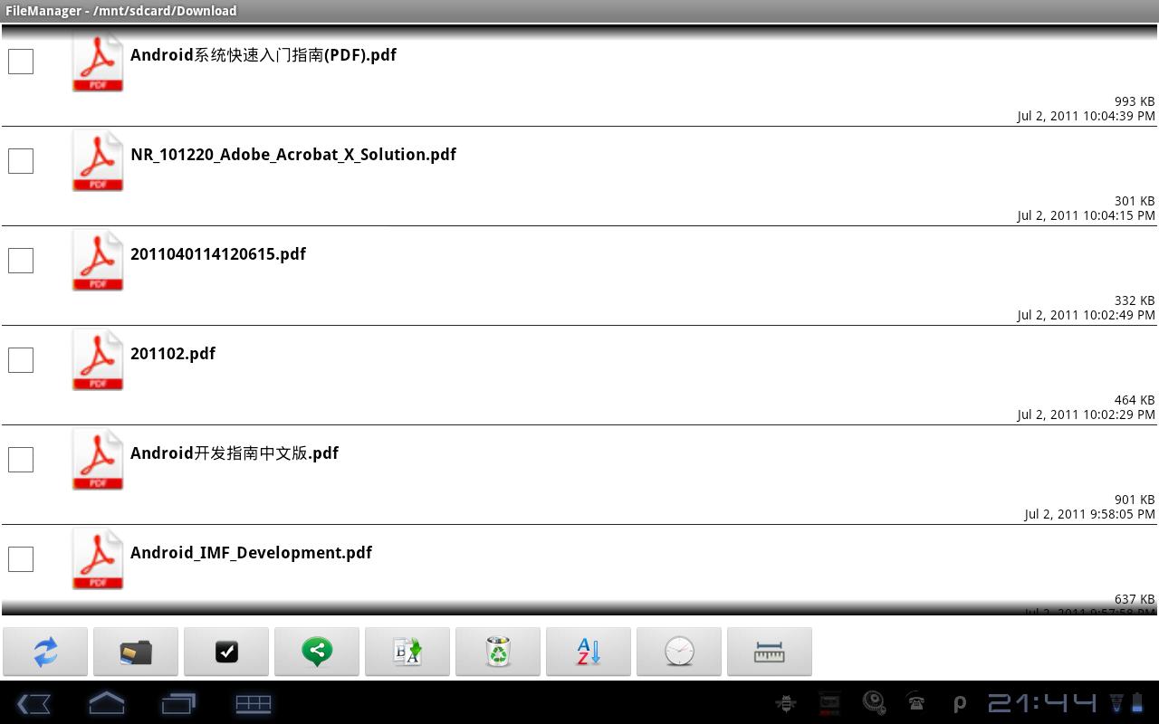 - स्पर्श आइकन फ़ाइल / फ़ोल्डर / फ़ाइल फ़ोल्डर को खोलने के नाम / तारीख / फ़ाइल आकार द्वारा क्रम ईमेल / ब्लूटूथ / नोट के माध्यम से भेज