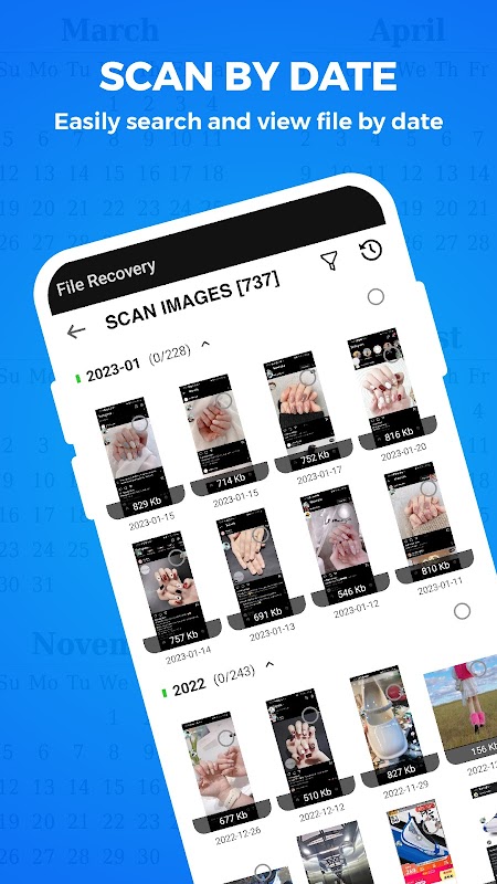 फ़ाइल पुनर्प्राप्ति एप्लिकेशन उन सभी छिपी हुई फ़ाइलों को सूचीबद्ध करेगा जिन्हें पुनर्स्थापित किया जा सकता है, आइए उन फ़ाइलों का चयन करें जिन्हें आपको पुनर्प्राप्त करने की आवश्यकता है, और केवल एक टैप से आसानी से पुनर्प्राप्त करें।