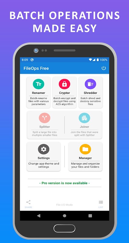 फाइलऑप्स फ्री: बैच का नाम बदलना, कतरन, एईएस एन्क्रिप्शन और फाइल प्रबंधन