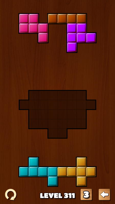 विभिन्न प्रकार के ब्लॉक के टुकड़े स्क्रीन के केंद्र में गेम पैनल को पॉप्युलेट कर रहे हैं।