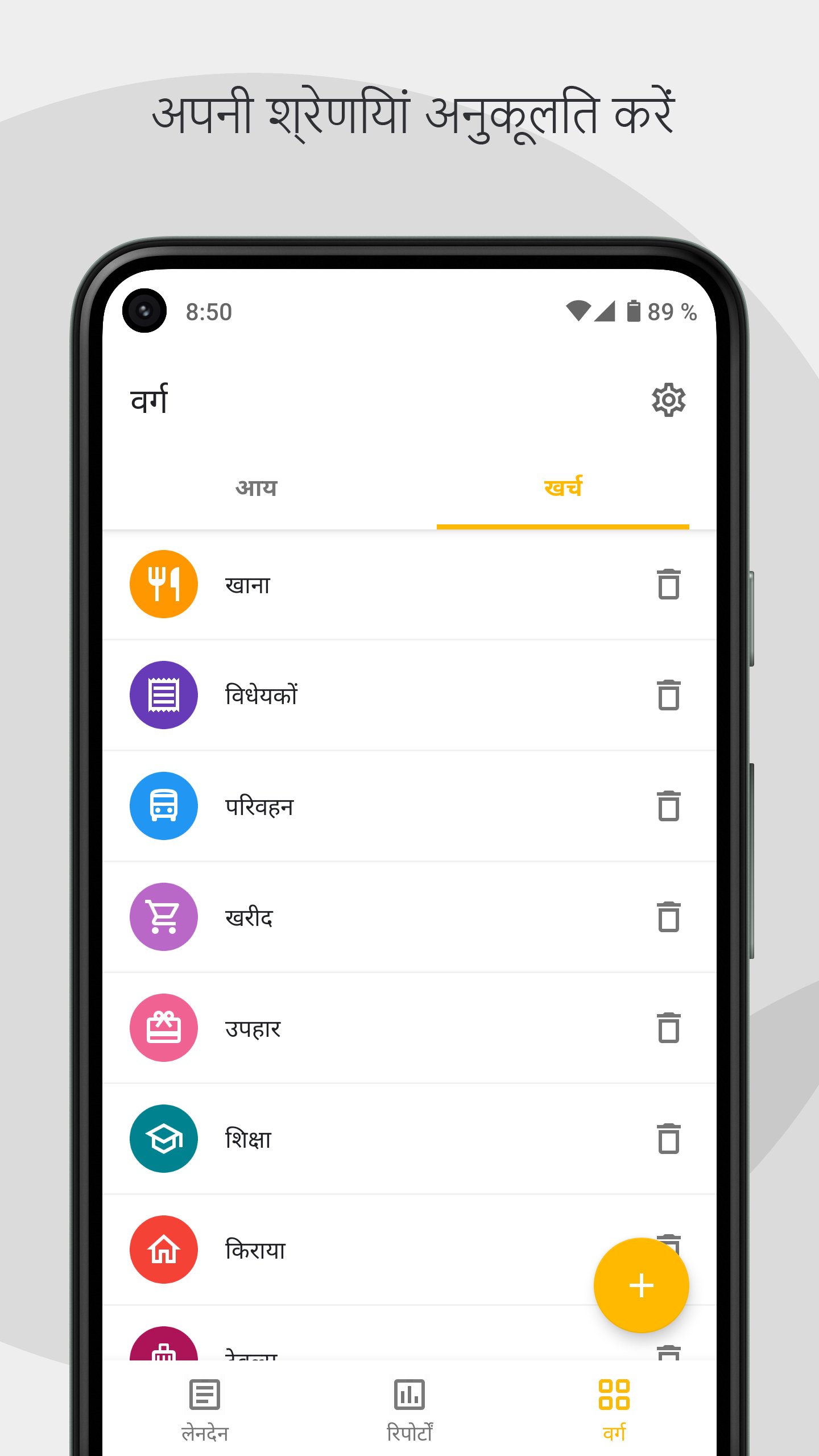 • श्रेणियों को अपनी पसंद के अनुसार अनुकूलित करें