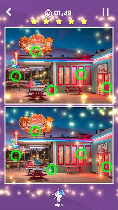 प्रत्येक चित्र में 5 अंतर होते हैं, अंतर्दृष्टि को बढ़ाते हैं, मस्तिष्क को प्रशिक्षित करते हैं, उन्हें ढूंढते हैं, और प्रेरक दृश्य क्षमता का आनंद लेते हैं.