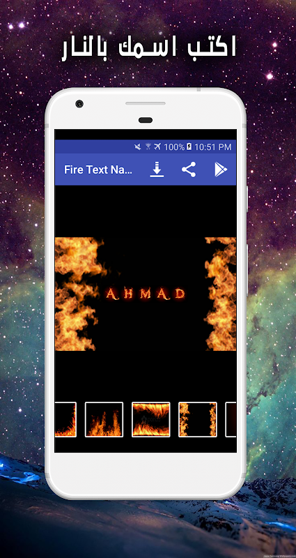 Choose fiery frames that suit your photos perfectly and wrap them up. Get fiery effects to your pictures using “Fire Name Art 3D ”.