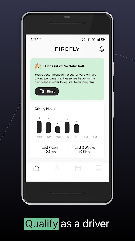 आरंभ करें: आज ही ट्रैकिंग शुरू करने के लिए ऐप डाउनलोड करें। Firefly स्मार्ट स्क्रीन के योग्य होने के लिए हमें प्रति सप्ताह कम से कम 40 घंटे काम करने वाले ड्राइवरों की आवश्यकता है। संभावित स्थापना के योग्य होने के लिए आपको कम से कम तीन (3) सप्ताह के लिए अपनी ड्राइविंग को ट्रैक करने की आवश्यकता होगी।