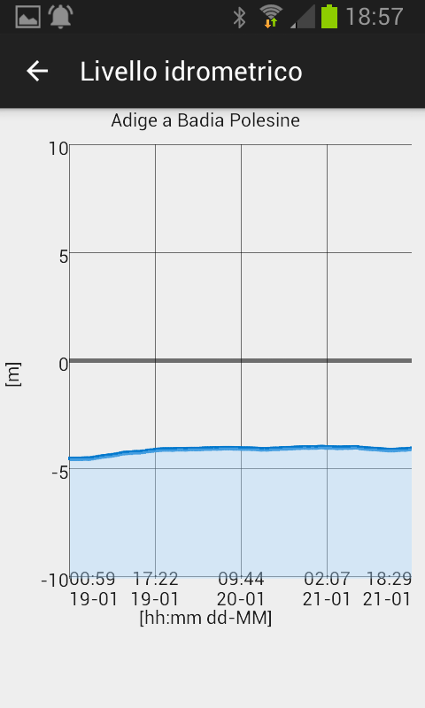 (ARPAV से खुला डेटा के अंतर्गत लाइसेंस http://www.arpa.veneto.it/dati-ambientali देखें) जल स्तर पर डेटा स्टेशनों को पढ़ने के द्वारा वास्तविक समय में प्राप्त कर रहे हैं। डेटा मान्य नहीं है।
