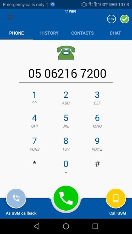 - मोबाइल नेटवर्क (जीएसएम) के साथ डायल करें
