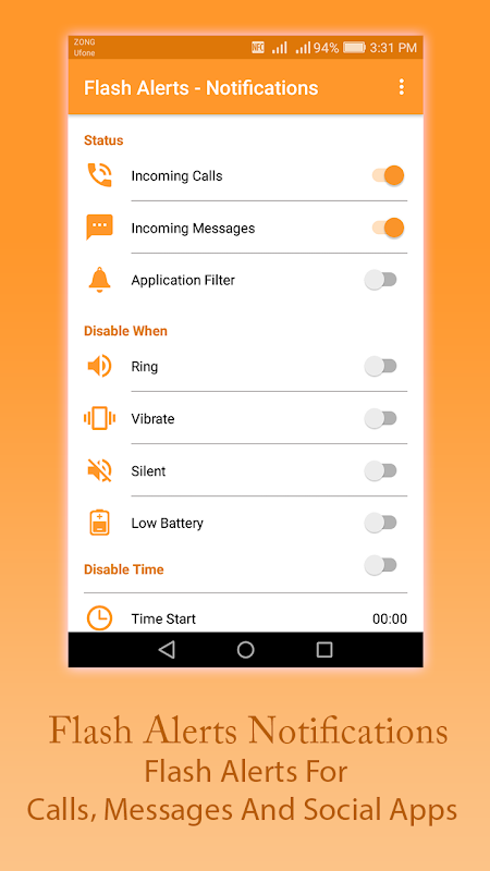 यह एक आवक संदेश और फोन के साथ सचेत करने के लिए सबसे अच्छा तरीका है। आप एक बैठक, कार्यालय, कक्षा, मस्जिद में हैं। फ्लैश चेतावनी - सूचनाएं एक उच्च ऊंचाई ध्वनि के बिना आपको सचेत कर सकते हैं एक app बजाय निमिष एक स्टाइलिश फ्लैश लाइट नहीं है। आपकी क्या करता है कि सक्रिय फ़्लैश अलर्ट सो रहे हैं, वहीं अचानक आप awak नहीं। फ्लैश अलर्ट - अधिसूचना आने वाली कॉल और संदेश और फ्लैश की गति निमिष पर सक्रियण से संबंधित एक पूरी तरह से अनुकूलन विकल्प होता है। लगभग सभी उपकरणों के लिए संगत बनाने कि कई फ्लैश चालक भी शामिल हैं। फ्लैश चेतावनी - अधिसूचना बज आप के लिए शर्मिंदगी का कारण बन सकता है जहां जगह के लिए सबसे अच्छा विकल्प है। यह यह प्रकृति का सबसे अच्छा अनुप्रयोग है और यह मुक्त करने के लिए है।