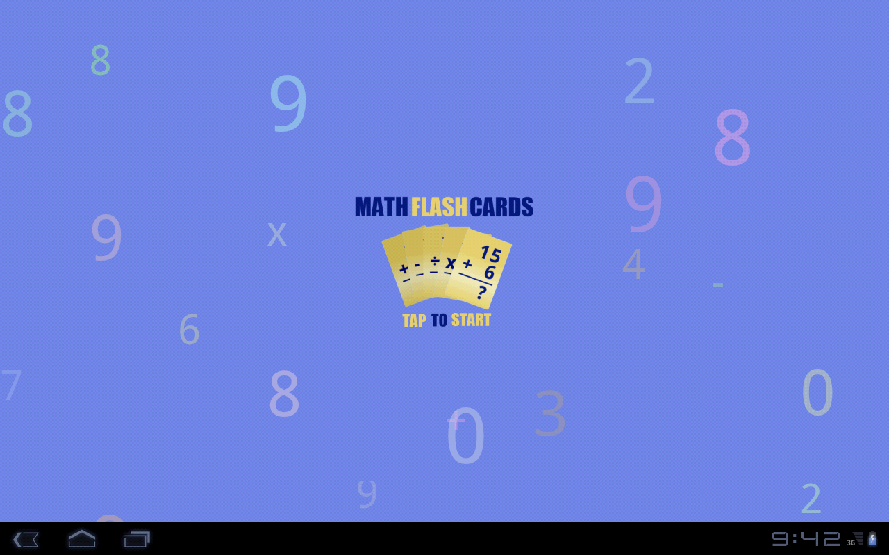 Math Flash Cards gives you a virtual deck of flash cards. You can configure the app to practice addition, subtraction, multiplication, or division (or mix them all together). All completely free and with no ads!
