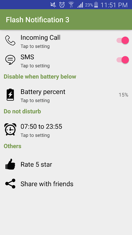 Flash Notification app enhances the phone functionality by giving flash notification on incoming call or sms.