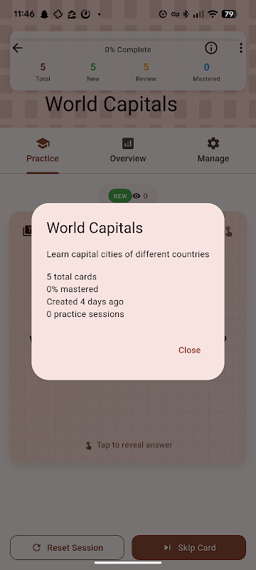 टेम्परेट डिज़ाइन्स द्वारा विकसित, फ़्लैशकार्ड के साथ सीखने के लिए एक आधुनिक, सुविधा संपन्न फ़्लटर एप्लिकेशन। यह ऐप आपके प्रदर्शन को ट्रैक करके और कार्ड की आवृत्ति को तदनुसार समायोजित करके सीखने की दक्षता को अनुकूलित करने के लिए अनुकूली एल्गोरिदम का उपयोग करता है।