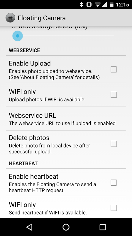 - फ्लोटिंग कैमरा हर एक्स सेकंड / मिनट स्वत: मोड में तस्वीरें ले सकता है