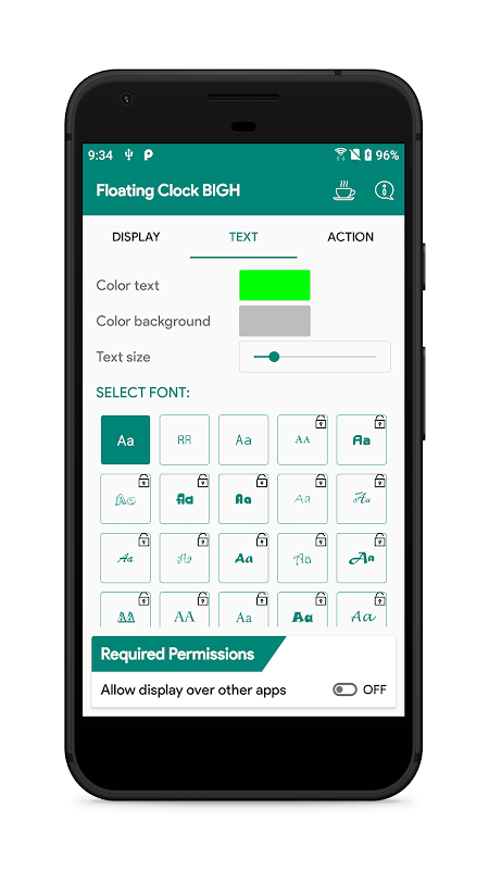 Useful for you when on full-screen apps like watching film, play game, ect... with Floating Clock.