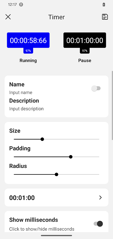 समायोज्य आकार, पैडिंग, त्रिज्या और रंग के साथ घड़ी की पृष्ठभूमि को निजीकृत करें।