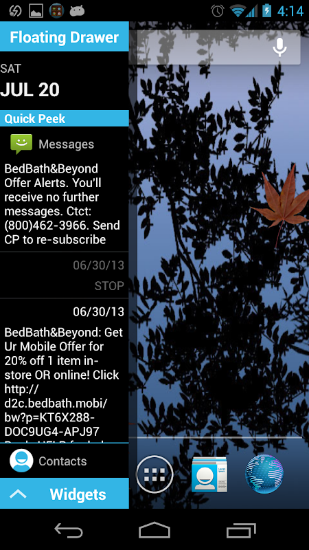 Floating Drawer floats on top of your applications and lets you dock your home screen widgets in it so you can access the widgets without even having to leave the application you are in.