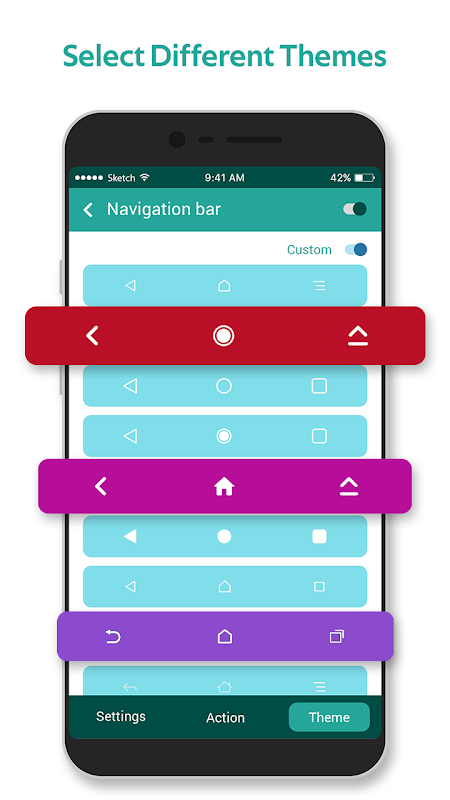 कई नेविगेशन बार ऐप उपयोगकर्ता को व्यक्तिगत पृष्ठभूमि कार्य के साथ अपना नेविगेशन बार बनाने की अनुमति देते हैं। सभी नए सहज ज्ञान युक्त फ्लोटिंग नेविगेशन बार - अनुकूलित फ़्लोटिंग सुविधा के साथ अनुकूलित नेविगेशन बार बनाने के लिए संपादन सुविधाओं की एक श्रृंखला की सुविधा प्रदान करता है, जिसमें उपयोगकर्ता नेविगेशन पट्टी को स्क्रीन पर आसानी से स्लाइड कर सकता है।