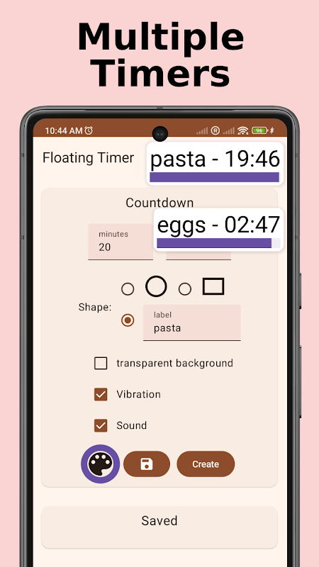 एक उलटी गिनती टाइमर और स्टॉपवॉच दोनों की सुविधा है जो अन्य ऐप्स पर तैरती रहेगी।