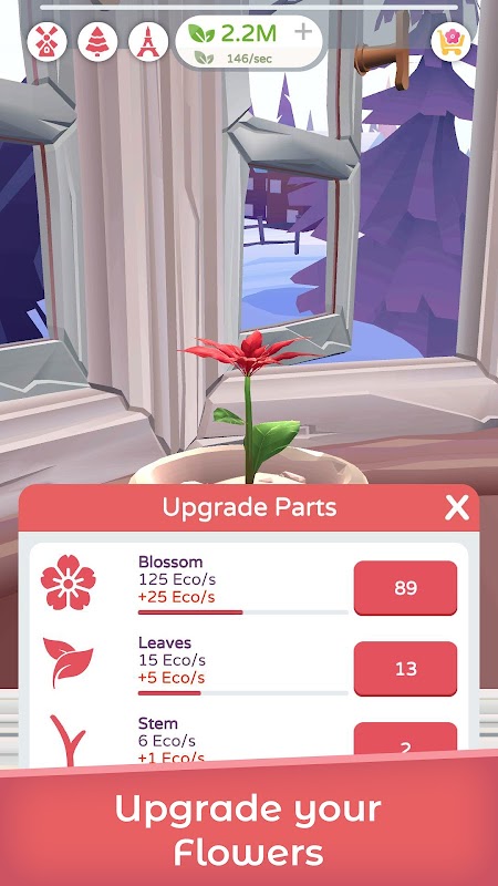 ईको पॉइंट लीजिए और अपग्रेड में निवेश कीजिए। प्रत्येक पौधे को कदम दर कदम बढ़ने और विकसित होने में मदद करें।