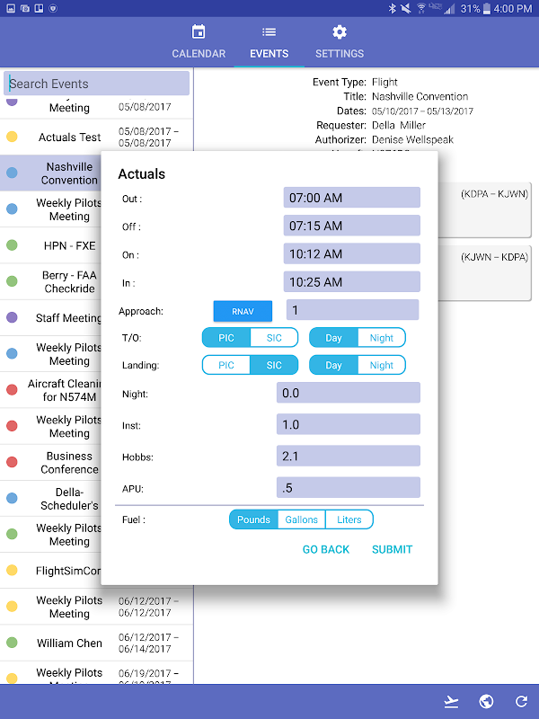 FltLogic केवल उड़ान शेड्यूलिंग प्रोग्राम है जो FltPlan के साथ एकीकृत करता है। साथी एप्लिकेशन एक सरल, आसानी से उपयोग अंतरफलक आप यात्रा शीट को देखने और FltLogic कैलेंडर का उपयोग करने की अनुमति देता है कि सुविधा है। एप्लिकेशन विस्तृत घटना की जानकारी के लिए उपयोग के साथ एक खोज घटना की सूची पेश करता है। नई घटनाओं और पुश नोटिफिकेशन के साथ मौजूदा ईवेंट में परिवर्तन के शीर्ष पर रहें। FltPlan मानचित्र बिल्डर का एक लिंक आप आधार नक्शे और मौसम ओवरले की एक किस्म के साथ अपने मार्ग देखने देता है।