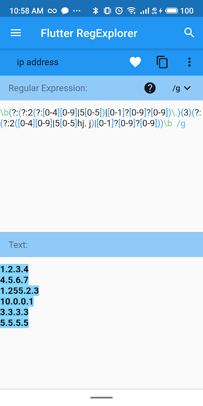 स्पंदन RegExplorer Flutter / डार्ट के लिए realtime नियमित अभिव्यक्ति मूल्यांकनकर्ता है।