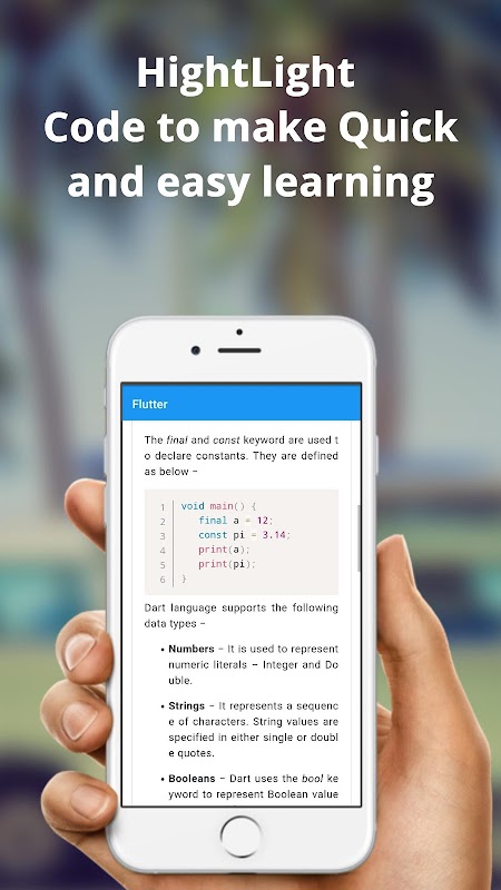 Learn Flutter - Flutter Tutorials App is for beginners that explains flutter components, with an option of Source code View.