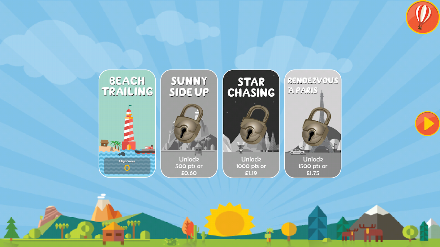Flying over the beach, mountains and skylines of major cities such as London, Paris and New York collect all the gold and stars that come in your way. Put your gaming skills to use and complete each level to unlock the next theme. The game has six themes with varying difficulties and rewards.