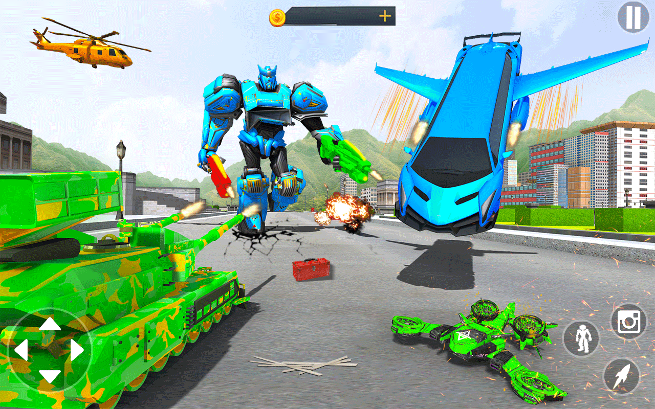Install this multi robot car games for unlimited fun and action in the city street of battlefield robot battle!