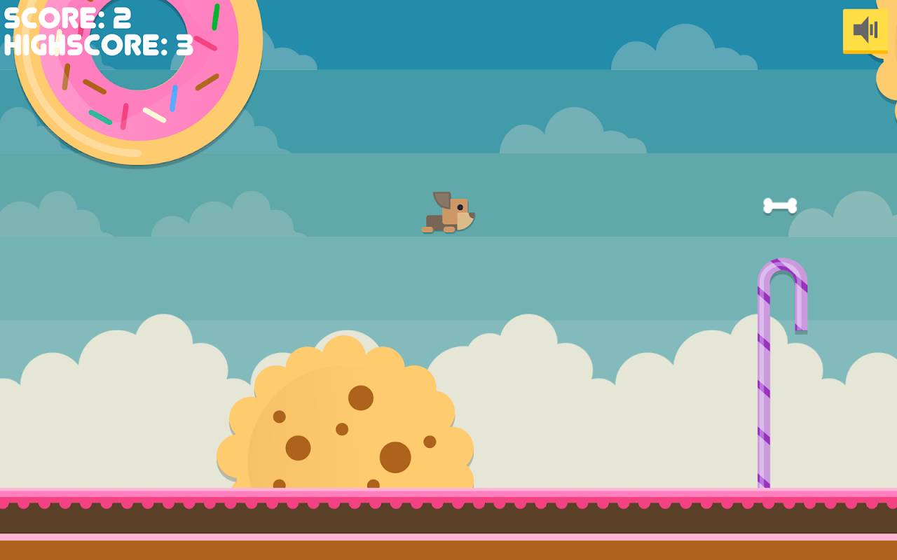 The gameplay is similar to the Flappy Bird, Timberman and many other titles and arcade mechanics click-action. At the same time there are also differences from Flappy Bird, Timberman. A dog named Toby is necessary not just go around obstacles, but also to collect the bones. That bone is a key parameter in the game. With them, the player can open levels with new content, such as candy, cookies, chocolate bars, donuts, banana.