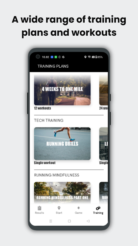 - 1 मील, 5K, 10K या हाफ मैराथन (21K) के लिए प्रशिक्षण योजनाओं में से चुनें।