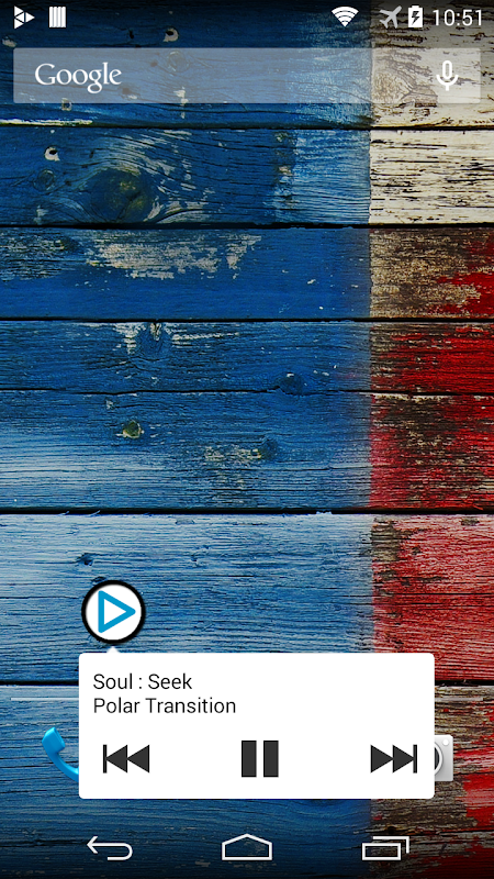 बटन अपने संगीत को नियंत्रित करने के साथ साथ Floatifications (फ्लोटिंग अधिसूचनाएं) में वर्तमान में चल रहे ट्रैक और कलाकार पता चलता है (अगले / रोकें / खेलने पिछले /)। अधिसूचना में अगले पर दोहन अपनी पसंद के खिलाड़ी का शुभारंभ करेंगे (आप वरीयताओं में लांच करने के लिए खिलाड़ी का चयन करना होगा)।